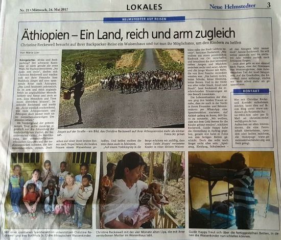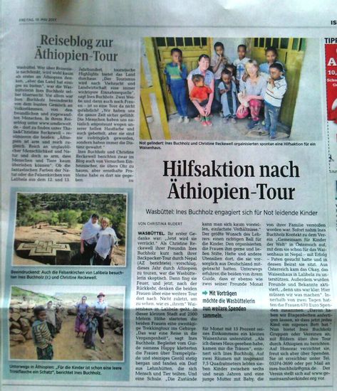 Auch diverse Zeitungsberichte über den Trip der 2 in Äthiopien gibt es mittlerweile! Danke Ihr Zwei seit Klasse! Weiter so!