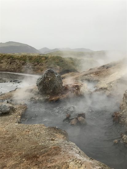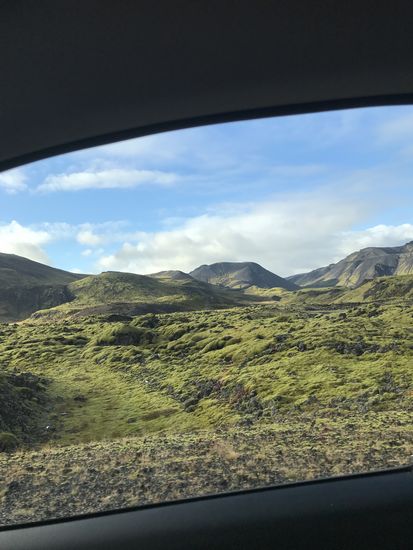 An das Geschwindigkeitslimit mit 90km/h konnte ich mich nur schwer gewöhnen, dennoch finde ich es durchaus sinnvoll. Schon kurz hinter Reykjavik änderte sich das Landschaftsbild komplett. Berge, dampfende Schwefelquellen und mit Moos bewachsene Steine bestimmten nun die Landschaft. Gleichzeitig autofahren und die Landschaft bewundern ist schwierig und gefährlich.