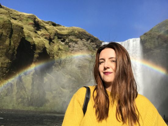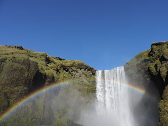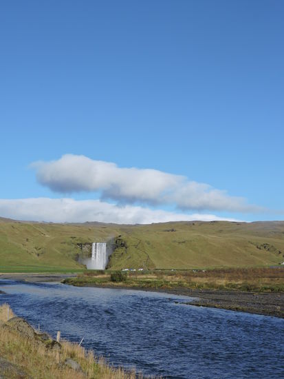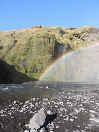 Skogafoss ist der nächste beliebte Wasserfall im Süden Islands. Auch er fällt