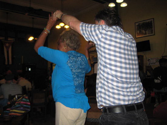 Nach dem Essen haben wir uns in der Altstadt eine kleine Bar mit Livemusik gesucht. Da mußte ich gleich mit der ältesten Kubanerin einen Salsa tanzen. Die hatte einen Schwung