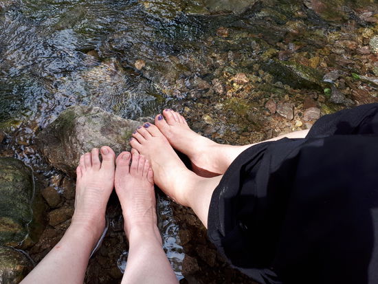 Zurück am Wohnmobil die Füße kühlen....der Bach hier war verdammt kalt - aber unsern Füßen tut es gut!