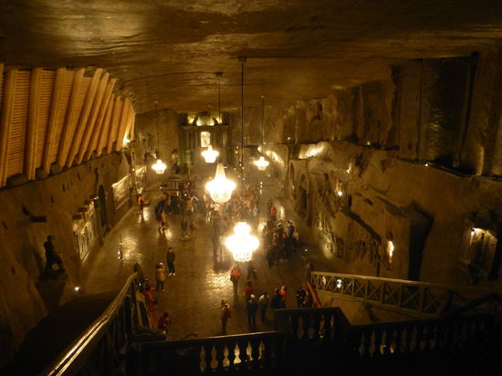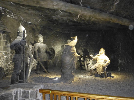 Gleich zu Beginn müssen wir 378 Stufen hinab steigen. Dann werden wir über zwei Stunden lang durch riesige Hallen mit beeindruckenden Steinsalz-Skulpturen geführt. Wir legen hier unten eine Strecke von 4,5 Kilometer zurück. Insgesamt gibt es jedoch über 300 Kilometer Gänge und Stollen, so dass wir nur einen Bruchteil davon zu sehen bekommen.