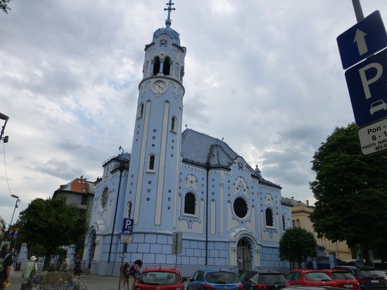 Danach schauen wir uns noch die blaue Elisabethkirche an. Ein etwas schräges Jugendstilgebäude - ein Mischung aus Hundertwasser und Schwimmhallenblau - aber leider geschlossen. So können wir das kuriose Stück nur von außen bewundern.