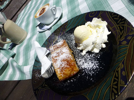 Dann stärken wir uns zunächst im Fährhaus mit einem Café und leckerem Apfelstrudel. Schließlich sind wir jetzt im Land der Mehl- und Süßspeisen