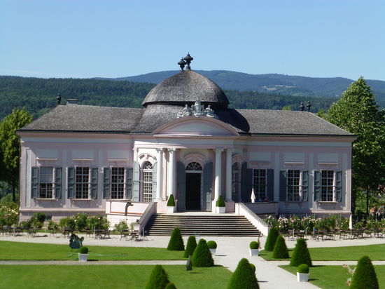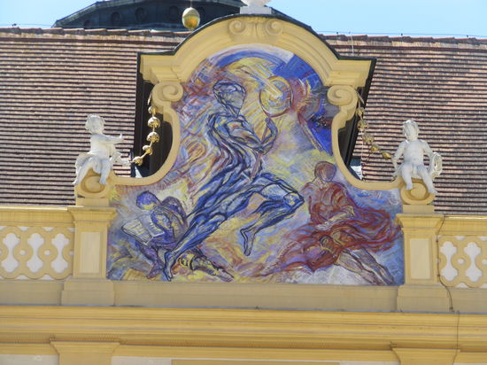 Auch der barocke Garten oder besser Park ist sehenswert. Wir sind schwer beeindruckt und kehren zurück zum Campingplatz. Nach einer Gassirunde und kurzen Siesta lassen wir diesen wunderschönen Sommertag im Biergarten bei Backhendl-Salat und Fährhausteller sowie ein paar Viertel grünem Veltliner aus der Wachau ausklingen.