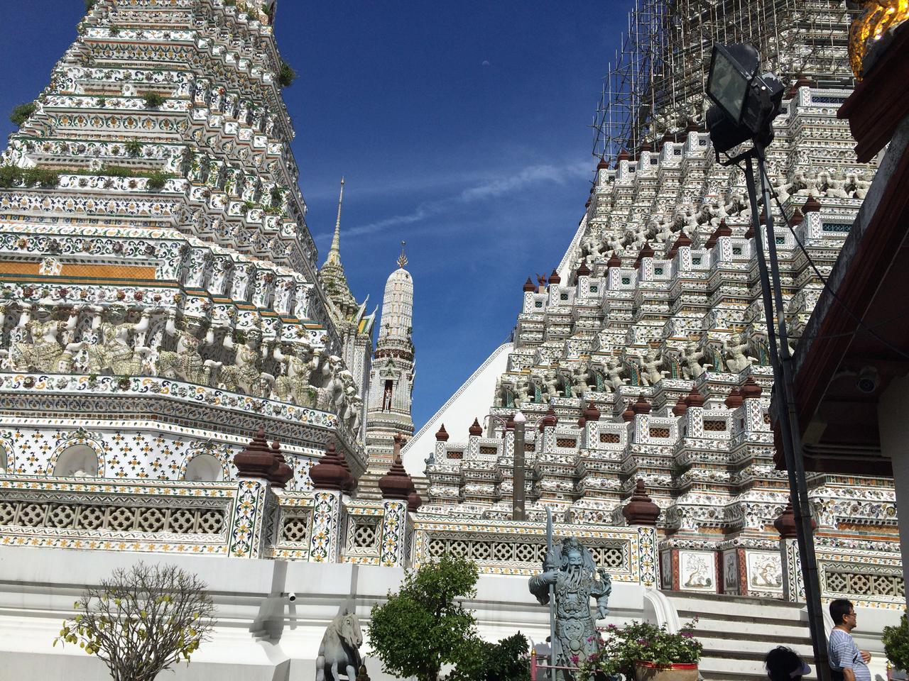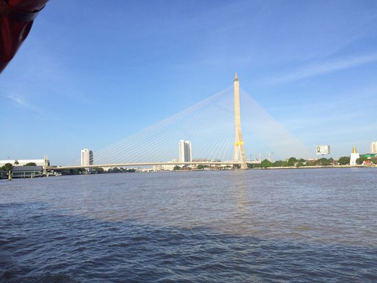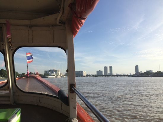 Ich lasse mein Gepäck da, behalte etwas Geld, die Beschreibung des Hotels, Mobil und Kreditkarte und mache mich auf zur Bootsstation, die mir der Taxifahrer gezeigt hat. Hier kaufe ich für 15 Bath ein Ticket und fahre flussaufwärts. Es ist viel los, auf dem Wasser. Die verschiedensten Boote befahren ihn. Wir fahren unter vielen Brücken, an den Ufern stehen hohe moderne Gebäude neben zierlichen goldgeschmückten Häusern. Ob es Restaurants, Pagoden oder Schiffsstationen sind, erschliesst sich mir nicht auf den ersten Blick.