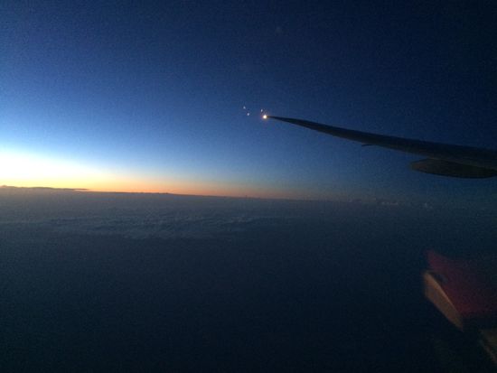Morgenland, Land der aufgehenden Sonne. Im Moment lassen wir die Sonne hinter uns, die letzten Strahlen sind noch farbig am Horizont zu erkennen, vor uns liegt die Nacht.