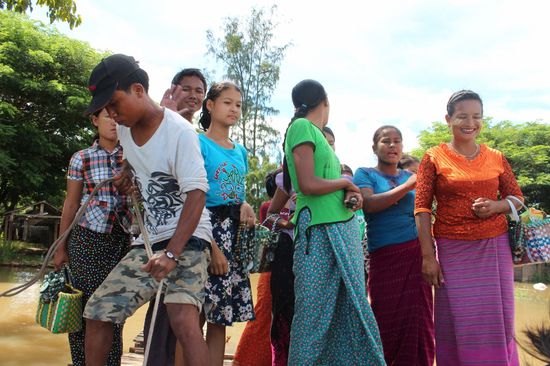 Nach dem Essen brauche ich gar nicht erst ins Taxi einzusteigen, die Fähre nach Inwa legt gleich hier ab.