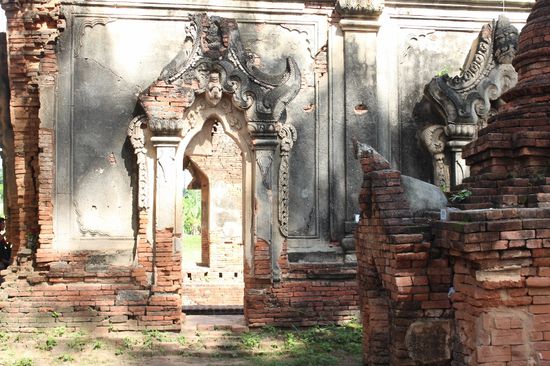 Bald erreichen wir eine Pagode, es heisst aussteigen. Es sind die Überreste eines grossen steinernen Tempels. Natürlich sitzen auch hier wieder ein paar Verkäufer mit Bildern. Und da meine Verkäuferin, Sue heisst sie, immer noch an meinen Fersen ist, sehe ich mir ihr Angebot jetzt doch noch richtig an.