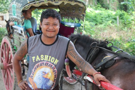 Während ich in eine der bereit gestellten Kutschen einsteige und es mir in dem wackeligen Gefährt bequem mache, hat sie ihr Fahrrad geholt und fährt hinterher.