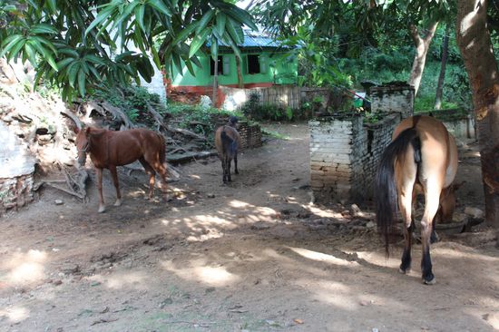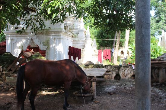 Und noch einmal gibt es eine grosse Pagode zu besichtigen, doch ich verlaufe mich dabei und komme erst nach einem Irrweg durch die privaten Quartiere, wo Pferde sich im Schatten erholen, wieder zurück zu den Kutschen.