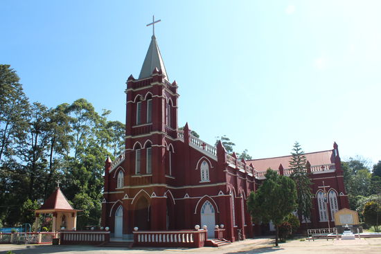 Wir fahren weiter. Er hält bei einer Kirche an. Es ist die katholische Kirche der unbefleckten Empfäng-nis. Auch sie ist rot gestrichen, so wie gestern die anglikanische Allerheiligen-Kirche. Alle Kirchen hier seien rot, erklärt mir Shotou.