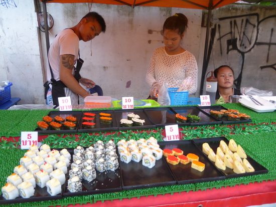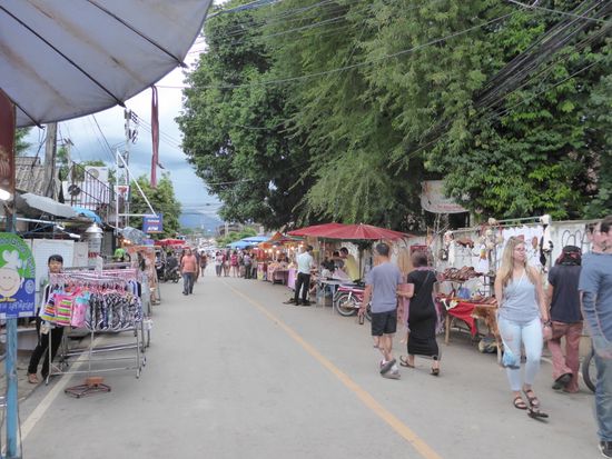 Es ist tatsächlich ein Treffpunkt für Backpacker und Aussteiger. Jedes Haus eine Reiseagentur, eine Boutique oder ein Tatoo-Studio. Imbisstände reihen sich mit einem vielfältigen Angebot an Schmuckläden. Dazwischen kurven Motorroller, flanieren Pärchen. Zum Glück ist keine Hochsaison, da wäre wohl kein Durchkommen mehr.