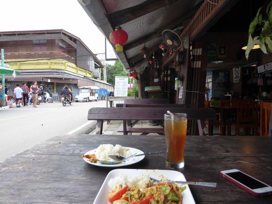 Dann schlendere ich weiter. Mein Magen knurrt und ich lasse mir in einem Thairestaurant ein Curry mit Garnelen und Reis servieren. Schmeckt sehr gut, aber nicht ganz so gut wie das, das ich vorgestern selber gekocht hatte.