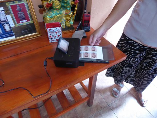 Mir fällt auf, wie er darauf besteht, dass die Preise eingehalten werden, dass keiner mehr bezahlt, als vorgesehen ist. Irgendwie drückt da die Angst nach Korruption durch. Ihr wisst jetzt, was ihr bezahlen müsst, gebt auf keinen Fall mehr. Und dann eröffnet er Fotostudio und Wechselstube. Er hat Laotische Kip dabei und wechselt dir restlichen Bath um. Ihr braucht nur noch 25 Bath für den Bustransfer, dann braucht ihr keine Bath mehr.