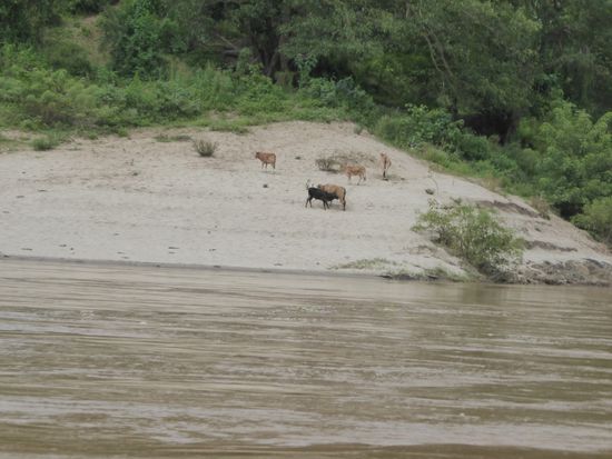 Dort steht eine Herde Büffel am Wasser. Sie sind grau und zuerst habe ich an wilde Elefanten gedacht. Es soll sie geben, in der Gegend. Doch das wäre wohl ein grosser Glücksfall, einem von ihnen zu begegnen. Ich suche das Ufer nach Vögeln ab. Nach weissen Fischreihern. Doch leider sind die weissen Flecken im Ufergebüsch immer nur weisse Plastiksäcke, die sich im Gestrüpp verfangen haben. Zu meinem grössten Erstaunen kann ich keinen einzigen Vogel entdecken