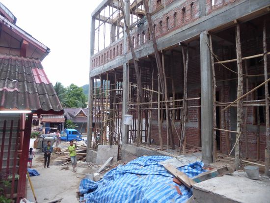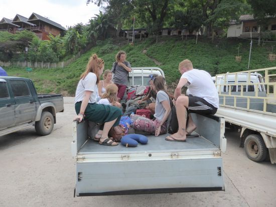 Unsere Truppe ist wieder angewachsen, gestern Abend sind noch drei Engländerinnen und eine Kanadierin dazu gekommen. Unser Buschauffeur, der sich im Hotel auch als Kellner betätigt hat, bringt uns zum nächsten Bankomaten, damit man sich mit Kip richtig eindecken kann und dann zur thailändischen Zollposten. Hier zeigen wir Pass und Einreisepapier, das bei der Einreise abgestempelt wurde und unbedingt aufbewahrt werden muss, dann müssen wir neue Formulare ausfüllen, die anderen brauchen zusätzlich noch ein Visaformular und weiter geht es zur laotischen Passkontrolle.