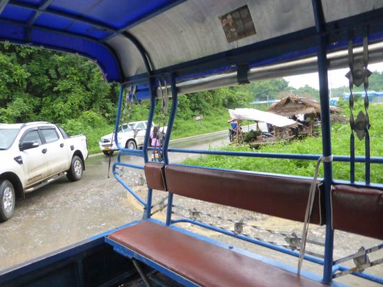 Das tönt verlockend, da können auch ein paar Regentropfen nicht schaden, ich ziehe das Badekleid an und engagiere einen der TucTuc-Fahrer, die mich immer nach einer Tour fragen.