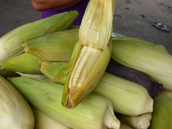 Ich hatte schon öfters kleine Maisfelder gesehen, war aber nicht sicher, ob ich das richtig erkannt hatte. Hier ist nun der Beweis: Es wird auch Mais angepflanzt.