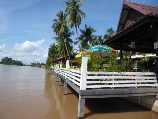 Wir setzten hinüber auf die andere Seite, die aber nicht das andere Ufer, sondern die grösste der viertausend Inseln ist, wie uns Khan erklärt. 4000 Inseln heisst die Gegend, denn der Mekong hat sich hier auf verschiedene Wasserstränge aufgeteilt und umspült kleine und grössere Hindernisse, die bei Niedrigwasser noch viel mehr sichtbar sind. Hier müssen die Schiffsführer die Gegend gut kennen, denn überall könnte eine Untiefe oder ein Felsen lauern. In einem kleinen Restaurant wo wir die einzigen Gäste sind, wird uns ein Mittagessen aufgetischt.