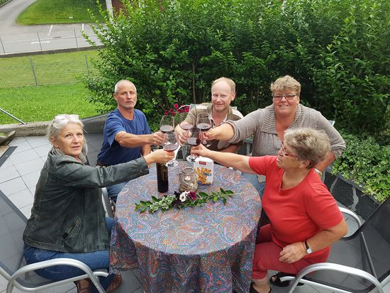 Meine Freunde haben in meinem Garten virtuell mit und auf mich angestossen. Die Foto habe ich nachträglich per Facebook erhalten.