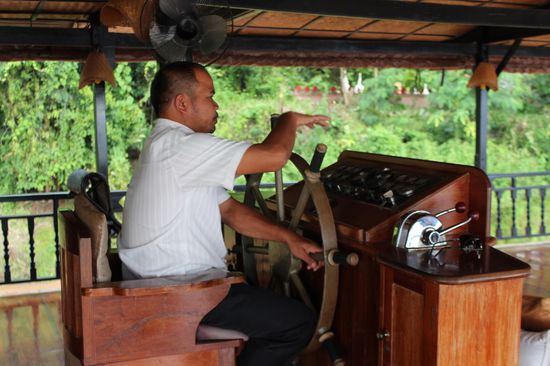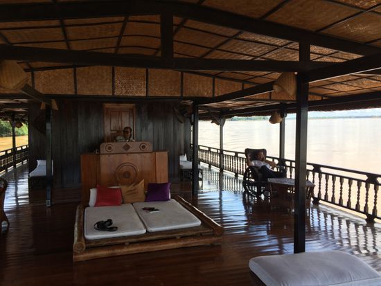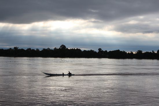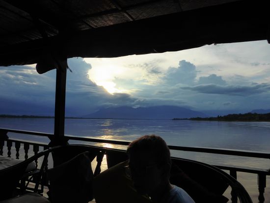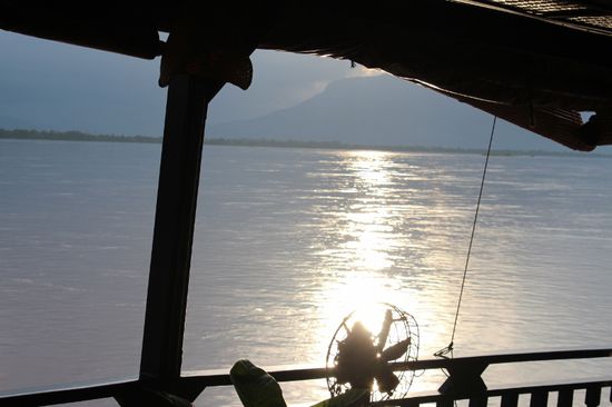 Der Rest des Tages gehört der Musse, dem Nichtstun. Lesen, schlafen, spielen, Siesta halten. Auf dem Wasser sehen wir manchmal kleine Fischerboote. Netze werden ausgelegt oder eingezogen. Am Ufer versteckt hinter hohen Bäumen liegen kleine Dörfer. Manchmal erkennt man einen Tempel, denn es gibt kein Dorf, das nicht seinen eigenen Tempel, seinen Buddha hat.