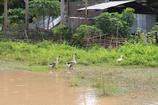 Oft stehen am Ufer auch Kinder, die laut auf sich aufmerksam machen. Wenn man sie sieht, winken sie und wir winken zurück. Ich frage mich dann immer wieder, wie diese Kinder die Touristen wohl sehen. Was sie sich wohl denken, wenn sie das grosse Schiff vorbeifahren sehen. So gross ist das Schiff natürlich nicht, aber da auf dem Fluss keine Warentransporte stattfinden, ist es eines der grössten Schiffe hier. Es fährt hier jede Woche 2-3 Mal vorbei. Wahrscheinlich sind wir einfach eine willkommene Abwechslung im Leben dieser Kinder.