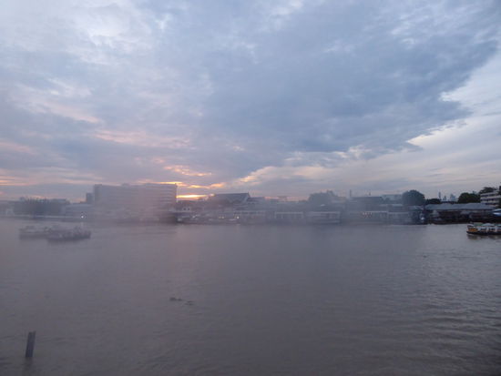 Vor dem Eingang steht ein junger Mann hinter einem Helpdesk. Ihn frage ich, was man denn unternehmen könnte. Als erstes schlägt er mir das Zentrum für Shopping vor, dann die Schnellbahn und zur guten Letzt die Pagode, die ich gestern Vormittag ausführlich erkundet habe und dann will er mir eine teure individuelle Flussfahrt empfehlen. Da war ich bereits für 15 Bath, moniere ich und er merkt bald, dass es nicht so einfach ist, mich zu beraten, da ich zwar den Anschein mache, erst angekommen zu sein, aber doch schon einiges gesehen habe.