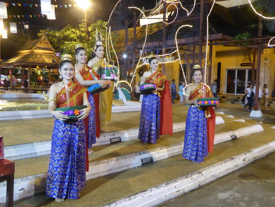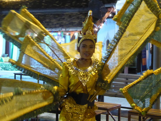 Die Show ist fantastisch. Es wird in grossartigen Bildern vom Leben und den Festen in den verschiedenen Gebieten Thailands erzählt. Es gibt Gewitter und sonnendurchflutete Landschaften, Regen, Bootsfahrten auf einem Fluss, der plötzlich auf der Bühne entsteht, wunderschöne Kostüme, fantasievolle Gestalten und lebende Tiere. Auch der Elefant ist wieder da und einmal werden ein paar Geissen durch ein Dorf getrieben, gackern Hühner und Enten. Boote und ein grosses Schiff schippern über die Bühne und das ganze wird untermalt mit feinen Klängen mit viel Gong und Cimbals und Glocken. Golden, farbig, prachtvoll.
