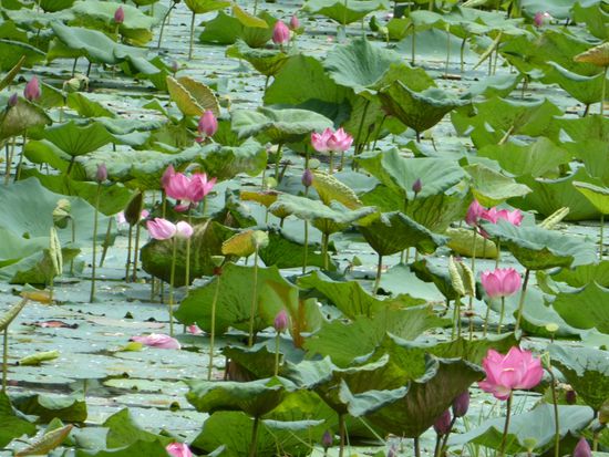 Neben dem Tempel sehe ich eines der vielen Lotuspflanzungen und frage Khan, nach dem Nutzen. Lotus wird angepflanzt, um die Blumen, wenn sie noch geschlossen sind, als Opfergaben für Buddha zu verkaufen. Ausgewachsene Blumen bilden Früchte, die gern roh gegessen werden. Und in der Trockenzeit werden die Wurzeln gegessen. Es ist also eine sehr vielseitige Pflanze, und ausserdem wunderschön.