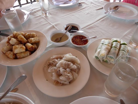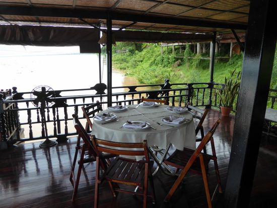 Und dann fahren wir zurück zum Schiff. Vom Vat Phou zur Vat Phou. Zum letzten Mittagessen, das uns draussen auf dem Fluss serviert wird.