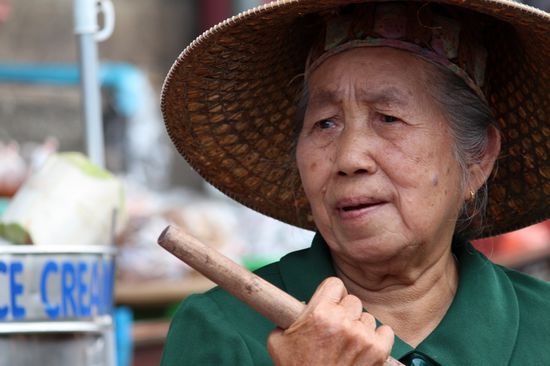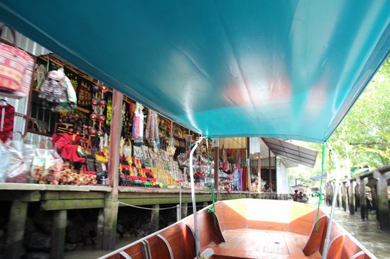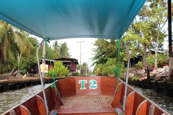 Es gibt überall in Thailand Kanäle, und diese Wasserstrassen sind traditionelle Verbindungswege. Wir fahren zum Markt von Damoen Saduak, dass ca. 100 km von Bangkok entfernt ist.