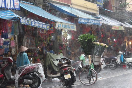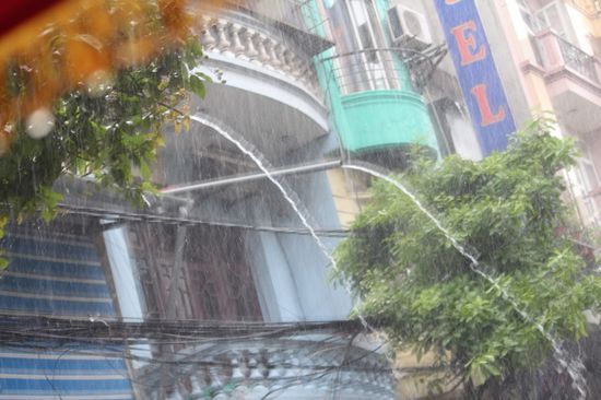 In einem Laden fällt mir ein wunderschöner Schirm auf. Bin aber nicht überzeugt, dass der den Wassermassen hier standhält. Auch heute versprechen die Wolken über der Stadt wieder Regen.