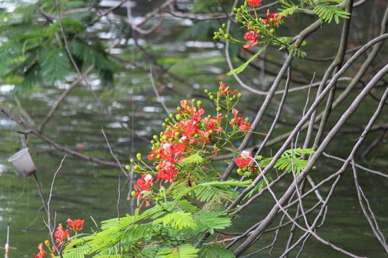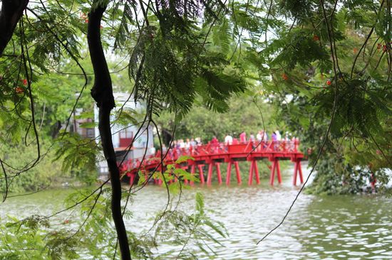 Die schmale rote Brücke zur kleinen Insel ist voller Touristen und ich überlege mir, ob ich mich anschliessen soll. kann mich aber nicht entscheiden, denn ich weiss ja nicht einmal, was es da zu sehen gibt. Ausserdem bin ich erst angekommen, habe also keine Eile.