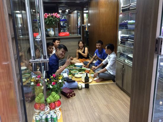 Auf dem Rückweg ins Hotel entdecke ich in einem Laden eine ganze Familie, die am Boden miteinander isst. Ich frage, ob ich eine Foto machen dürfe. Ja gern, lachen sie und laden mich ein, einzutreten. Da mir das Sitzen auf dem Boden nicht so behagt, lehne ich ab. Vielleicht habe ich damit etwas verpasst, wer weiss.