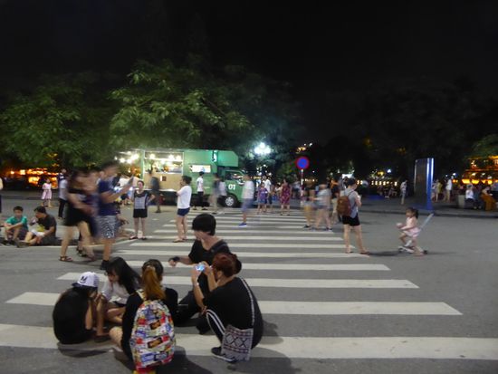 Als ich nach der Vorstellung aus dem Theater komme, traue ich meinen Augen nicht. Es ist dunkel geworden und draussen gibt es keinen Verkehr mehr. Da wo noch am Nachmittag das reine Chaos geherrscht hat, ist jetzt komplette Fussgängerzone. Der ganze Platz ist frei. Menschen sitzen mitten auf der Strasse, schwatzen, lachen, spielen. Ich bin völlig fasziniert. Ja begeistert. Von dieser Stadt. Von dieser grossen Stadt, die so friedlich daherkommt. Es sind Einheimische und Touristen, die jetzt den Platz in Beschlag nehmen. Ganz viele junge Leute aus der ganzen Welt.