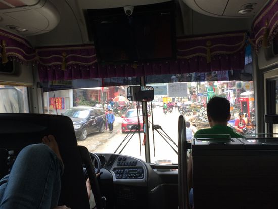 Wir sind gleichmässig schnell unterwegs. Überholen alles. Dabei ist es völlig egal, ob der vor uns fahrende rechts oder links fährt. PW, Lastwagen oder Bus. Es wird auf beiden Seiten überholt. Gerade erst sind wir von unserem letzten Halt losgefahren. In zwei Stunden werden wir in Hanoi sein. Die Busfahrer kennen die Strecke, fahren sie wahrscheinlich jeden Tag. Am morgen hinauf, am Nachmittag/Abend zurück.