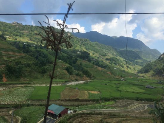 Noch einmal die Reisfelder auf den Terrassen sehen. Die Aussicht hält mich ab, auf die Strasse zu sehen. Denn es ist unglaublich, wie die Busfahrer hier überholen. Sie gehen wohl davon aus, dass jetzt kein Bus mehr entgegen kommt. Den Motorrädern und den Taxis können sie immer ausweichen und bei den paar grossen Lastwagen, die wir überholen (!!) hat alles geklappt.