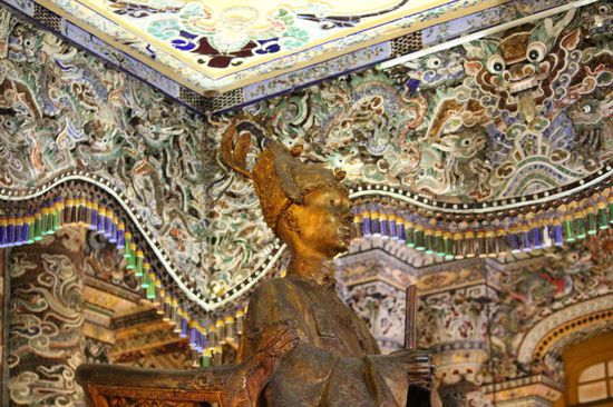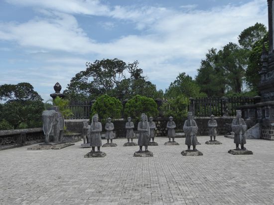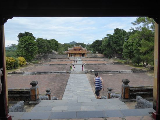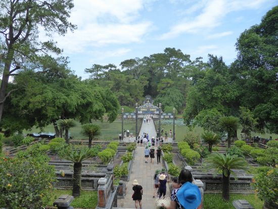 Hué war lange die Hauptstadt Vietnams. Zu einer Zeit, als noch Kaiser das Land regierten, darum gibt es hier einige Kaisergräber. Sie befinden sich alle ausserhalb der Stadt in wunderschönen Anlagen. Die erste, die wir besuchen ist die Minh Mang Tomb.