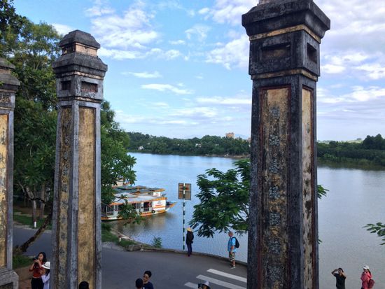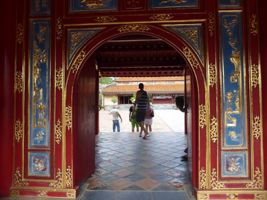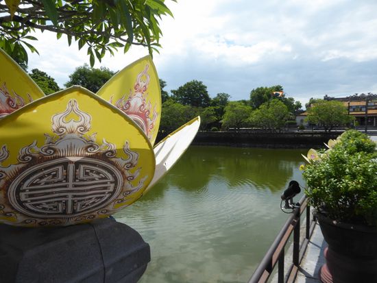 Nächster Besuchspunkt ist die Zitadelle von Hue, die Kaiserstadt. Es ist brütend heiss, bevor ich hinein gehe, kaufe ich einen Hut. Das muss jetzt sein. Es ist keiner der schönen runden Hüte, die mir viel besser gefallen hätten, es ist ein praktischer Hut mit Zimtaroma, den man zusammenfalten kann und der dadurch sogar in die Handtasche passt.