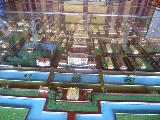 Ich sehe mir das Modell an und sehe, dass es so riesig ist, dass ich in der momentanen Verfassung nicht einmal einen Bruchteil sehen könnte. Also setze ich mich in einen der schattigen Gänge und betrachte die Leute. Sie schleichen durch die Gänge, kämpfen mit ihrer Motivation, laufen hinter ihrem Guide her, der unerschöpflich Informationen von sich gibt. In englisch, französisch, spanisch und einmal höre ich sogar deutsch. Ich bin richtig froh, dass ich niemandem folgen muss, dass ich den Komplex einfach auf mich einwirken lassen kann.