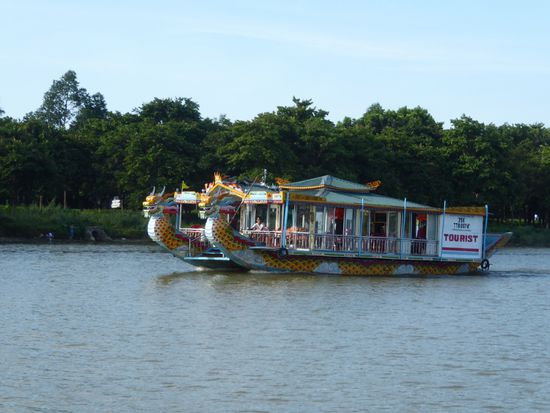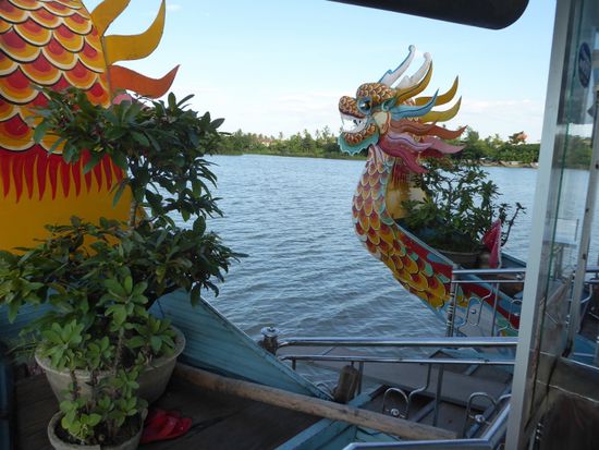 Allerletzter Programmpunkt. Die Pagode am Parfümfluss. Den Namen verdankt der Fluss den Blumen und Pollen, die im Frühling auf dem Wasser treiben. Vielleicht kommt der Name auch daher, dass auf diesem Fluss wohlriechendes Holz transportiert wurde.