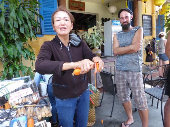 Nhi heisst die junge Frau, die mich abholt. Die Gruppe ist international. hinter mir im Bus wird holländisch gesprochen, neben mir sitzt ein spanisches Paar und ganz hinten sind zwei Schweizer. Doch das merke ich erst, nachdem ich mich mit Christof ein wenig auf dem Markt über unbekannte Früchte unterhalten habe. Woher kommst du denn? diese Frage wird irgendwann gestellt - und plötzlich merkst du, dass du schon die ganze Zeit mit einem Deutschen, oder gar einem Schweizer englisch geradebrecht hast.