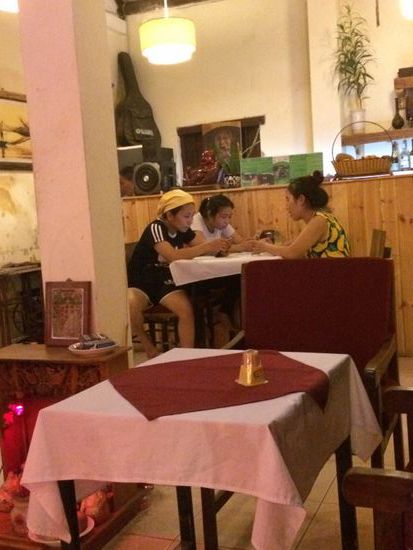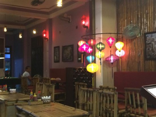 Ausserdem ist Hoi An für seine vielen farbigen Lampione bekannt. Das gefällt mir schon besser. Sie hängen in den Restaurants. Doch leider sind die Restaurants alle leer. Mir ist nicht klar, ob ich immer noch nicht im Zentrum bin, aber ich laufe die ganze Strasse entlang und treffe auch kaum einen Touristen. Die Lokale sind leer. Als ich irgendwo für einen Fruchtshake eintrete braucht es eine ganze Weile, bis mich jemand entdeckt. Es gibt ein paar böse Worte von der Besitzerin, die mir die Karte bringt, zum Kellner, doch kurz darauf sitzen alle wieder zusammen beim Buffet und starren in ihre Handys. Ich muss schon aufstehen, bis man bemerkt, dass da ja noch jemand bezahlen sollte.