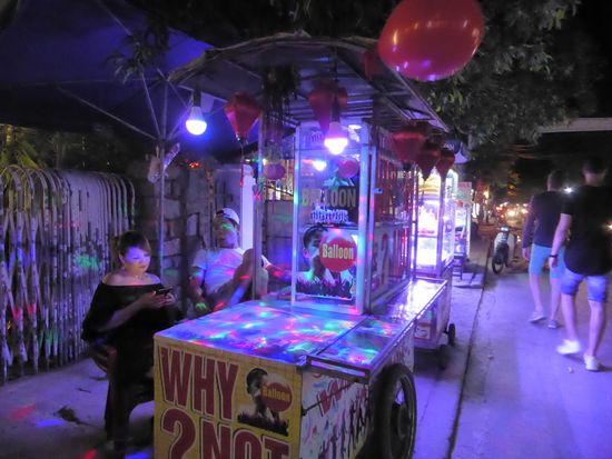 Möchtest du einen Ballon kaufen? Der Junge am wild beleuchteten Verkaufsstand hat mich angesprochen.