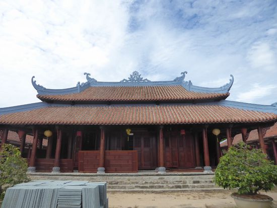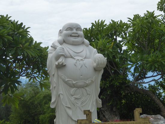 Ich war schon länger nicht mehr in einem Tempel, es scheint dass Duc das geahnt hat. Jedenfalls hält er jetzt an einer Pagode an. Die Van Duc Pagode ist die grösste der Stadt und liegt ziemlich weit ausserhalb. Sie hat einen dicken fröhlichen Buddha, der grinsend über die Landschaft schaut.
