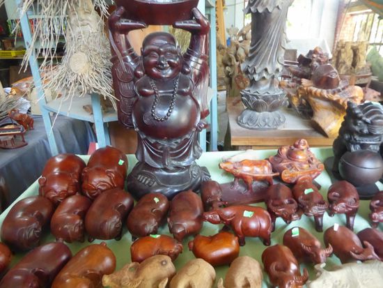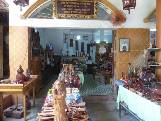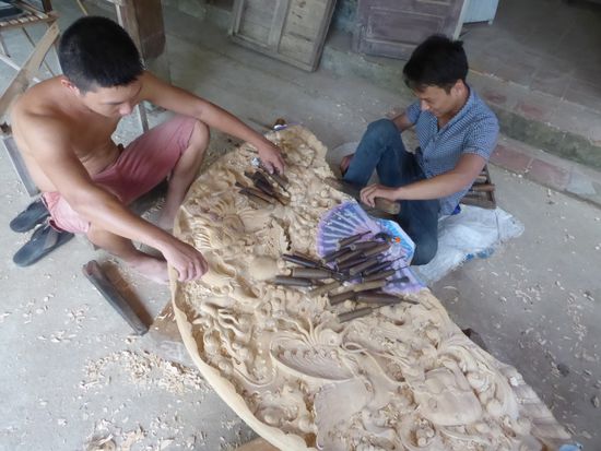 Inzwischen beschäftigt der Betrieb über 20 Angestellte und führt nicht nur Schnitzerarbeiten, sondern auch grosse Innenausbauten für Hotels und Tempel aus. Grundlage ist aber immer schön bearbeitetes Holz mit vielfältigen Dekorationen. Es gibt auch immer wieder junge Leute, die hier das Handwerk erlernen. Ich kaufe ein Set Essstäbchen aus Rosenholz. Wer weiss, vielleicht koche ich ja doch einmal ein vietnamesisches Essen, da braucht es schöne Stäbchen dazu.