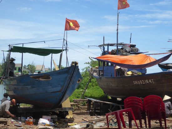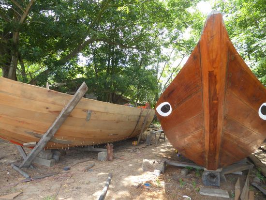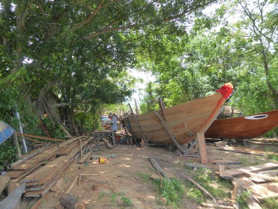 Hinter dem Dorf ist der Fluss und dort treffe ich auf Schiffsbauer. Neue Schiffe werden hier von Grund auf aufgebaut. Andere werden repariert.