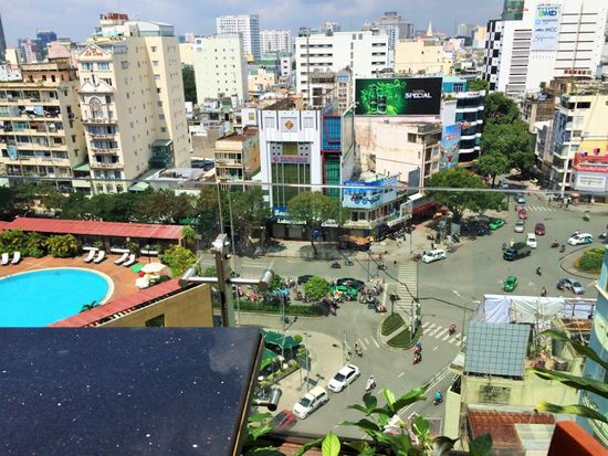 Ich habe für Saigon extra ein etwas besseres Hotell gebucht, denn ich wusste, dass ich heir eine Schreiboase brauchen werde. Darum mit Pool. Dass mein Zimmer aber gleich auf dem 9. Stockwerk liegt und der Pool nur eine Etage höher, ist natürlich ein extra-plus, mit dem ich nicht gerechnet habe.