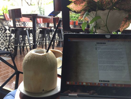 Egal, mir ist es zu heiss und zu feucht und alles klebt. Der Tisch, die Tastatur, die Haut... Also zurück ins Zimmer. Da ist es angenehm. Kühl und weich. Ich kann auch jederzeit noch ein Mittagsschläfchen einlegen.